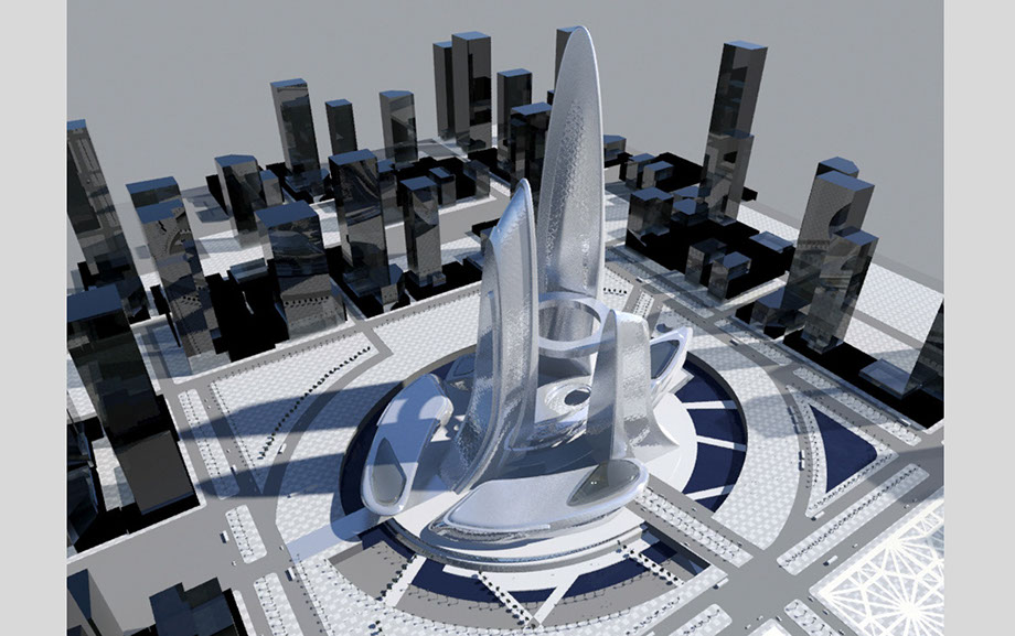 Designed at the request of a Dubai client on a hypothetical site, the Dubai Maison Mondiale Master Plan is a mixed-use development centered around the expanding Dubai home expo industry. The proposed development will house high-end furniture stores that offer exclusive and unique products from around the world. Organized as a series of concentric buildings around two iconic high-rise towers, the master plan design allows the future expansions of the expo program through the addition of additional concentric rings.