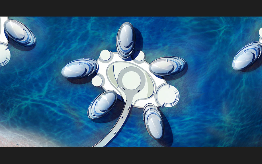 Located in a crystal clear shallow bay, this man-made residential island project contains 5 high-end residential pods each containing 15 apartment units. With a combined total of approximately 200,000 SF for each pod community, the experimental prototype can be repeated along the entire coast. The modern architectural language is inspired by the metaphor of an eroded sea shell.