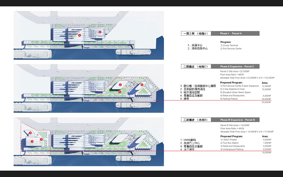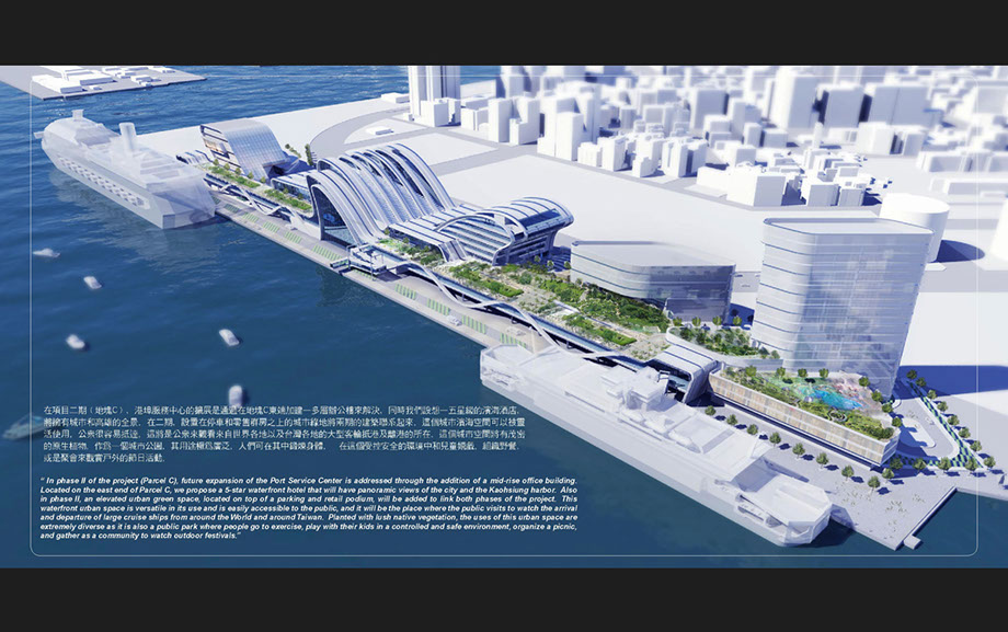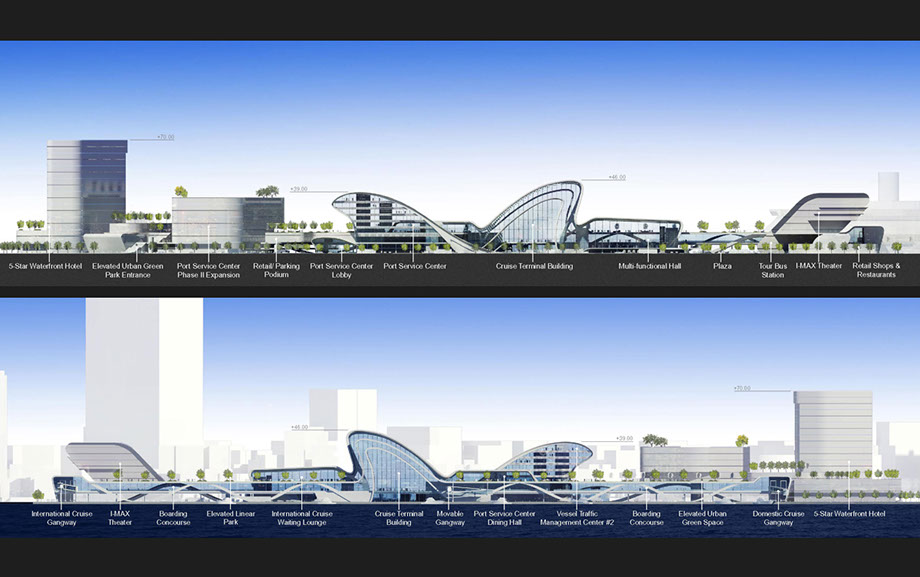 The key objectives for the Port of Kaohsiung Passenger Transportation District - Port and Cruise Service Center competition proposal are to create a modern maritime gateway or “beacon” for Kaohsiung, to serve as a catalyst for future area developments, and to consolidate all port services under one main complex.
