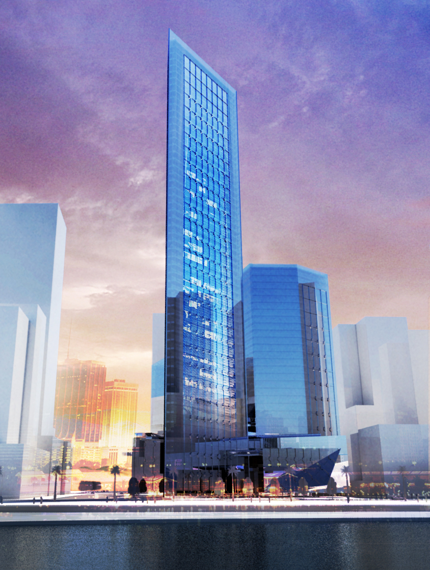 The proposed design solution included a 40-story serviced apartment tower tied to an 18-story, 200-room hotel. Both the residential and hospitality functions share common facilities such as the pool terrace, health club and spa, restaurants, concierge, and housekeeping services.